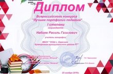 Безнең мәктәпнең география укытучысы Нәбиев Рәсил Газиз улы "педагогның иң яхшы портфолиосы"Бөтенроссия конкурсының I дәрәҗә Дипломы белән бүләкләнде. Котлыйбыз!