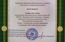 Подведены итоги муниципального этапа всероссийской заочной акции "Спорт - альтернатива пагубным привычкам". В номинации "Мой любимый вид спорта" воспитанник Гарифуллин Амир занял 1 место, воспитатель Зайнуллина Г.Г. 2 место, в номинации "Лидеры физического воспитания" инструктор по физической культуре Шаймарданова Г.К. 2 место. Поздравляем!