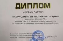 Районның "Юл хәрәкәте иминлеге" тарафыннан "Хәрәкәт иминлеге өчен" дип аталган видеороликлар конкурсы үткәрелде. Конкурс нәтиҗәләре буенча "Белем бирү фильмы" номинациясендә тәрбияче Шәйхиева Р.В. 2 урынны яулады. Котлыйбыз!