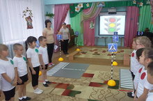 26 октября в нашем детском саду воспитателями средней группы №1 Галимзяновой Я.З., Хафизовой И.А.была проведена открытая образовательная деятельность на тему «Правила дорожные знать каждому положено», посвященная безопасности дорожного движения с участием начальника отделения в Кукморском районе отдела профилактики ТУ в г. Казани ГБУ «Безопасность дорожного движения» Яковлевой Елены Владимировны. На мероприятии дети дружно отвечали на вопросы, отгадывали загадки, танцевали под музыкальную композицию «Светофор». Учили Незнайку, который совсем не знал правил дорожного движения, как правильно вести себя на дороге, правильно переходить дорогу. Закрепить знания безопасного поведения на дороге помогли беседы и просмотр видеоролика о светофоре. В завершении дети сделали свои светофоры для макета «Улицы города». Основной целью нашей деятельности было воспитывать навыки выполнения основных правил поведения на улице, дороге, с целью предупреждения детского дорожно-транспортного травматизма. По завершению образовательной деятельности дети получили подарки - фликеры и трафареты «Виды транспорта». -