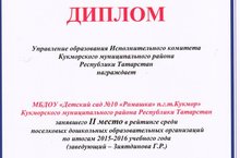 Поздравляем коллектив нашего детского сада, занявшего 2-е место в районом конкурсе по подготовке муниципальных образовательных учреждений к новому 2016-2017 учебному году среди дошкольных образовательных учреждений п.г.т.Кукмор.