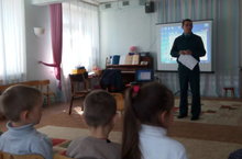 8 сентября 2014г. инспектором ОНД по Кукморскому муниципальному району УНД ГУ МЧС России по РТ лейтенантом внутренней службы Каримуллиным Фархадом Фаридовичем с детьми старших групп были проведены уроки безопасности на темы: "Детская шалость с огнем", "Правила поведения при возникновении пожара". Дети закрепили основные требования пожарной безопасности во время нахождения в детском саду и дома. Наши воспитанники с большим интересом слушали и запоминали.