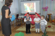 Для воспитанников подготовительной к школе группы было организовано театрализованное представление с участием детей, их родителей и педагогов “Грибная электричка”. Роли исполняли как взрослые, так и сами дети. Несмотря на юный возраст, они сыграли роли хлебосольных Хлебороба, Садовода и Огородницы, забавных Лисичек, Боровика и Рыжика, а так же хитроватой Мухи – объедухи, строгих Мухоморов.