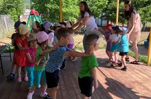 В детском саду уже стало традицией проведение фольклорного праздника "Сабантуй" для всех возрастных групп. Стартовал праздник ярко, зрелищно. В программу были включены индивидуальные выступления воспитанников - победителей муниципальных конкурсов "Татар кызы" и "Татар малае" Александровой А. и Залялиева С. Также все ребята показали свою силу, ловкость и выносливость в играх-соревнованиях: "Бег в мешках", "Бег с вёдрами", "Перенеси яйцо в ложке", "Перетягивание каната". Самым сложным для ребят оказалось попасть по горшку с закрытыми глазами, но с этим испытанием они справились. В рамках реализации договора о сетевом взаимодействии между детским садом и школой N 3 г. Кукмор, проекта "Педагогический класс", на праздник были приглашены обучающиеся 7 Б класса педагогической направленности. Они оказали реальную помощь в проведении праздника, почувствовали себя настоящими педагогами. Праздник оставил всем участникам незабываемые впечатления, подарил заряд бодрости, энергии и положительного настроя на добрые дела.