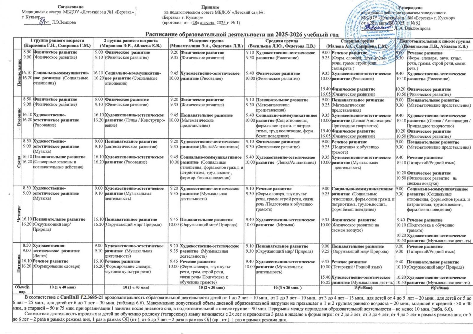 Расписание образовательной деятельности на 2025-2026 учебный год