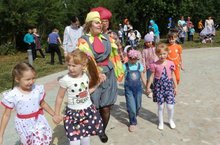 В День знаний во двор нашего детского сада заглянули клоуны Ириска и Клепа, они поздравили детей и их родителей с праздником и вручили каждому ребенку медальоны-смайлики.