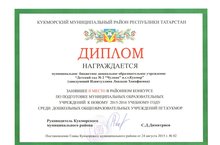 Поздравляем коллектив нашего детского сада, занявший 2-ое место в районном конкурсе по подготовке муниципальных образовательных учреждений к новому 2015-2016 учебному году среди дошкольных общеобразовательных учреждений п.г.т. Кукмор