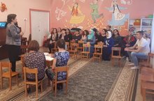 10.10.2018 балалар бакчасында «Татар телендә эшчәнлек алып баручы балалар бакчаларында милли тәрбия эшен алып бару» темасына беркетелгән балалар бакчалары тәрбиячеләре, район татар хатын-кызларының иҗтимагый “Ак калфак” оешмасы белән берлектә семинар-практикум булып үтте. Семинар-татар телендә эшчәнлек алып баручы балалар бакчаларында милли тәрбия проблемалары турында сөйләшенелде, бакча тәрбиячеләре үзләренең эш тәҗрибәсе белән уртаклаштылар