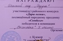 21 сентября в районном Доме культуры прошел традиционный народный праздник «Сюмбеля».В фойе была организована выставка садоводов, где была представлена продукция из осеннего урожая, комнатные растения и букеты из осенних цветов. Наш детский сад стал победителем выставки «Сюмбеля», призёром номинации "Зимние заготовки" и награждён дипломами и денежной премией.