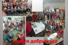 В неделю"Добрых дел" наши дети-волонтеры со своими воспитателями организовывали различные акции: Книжкина больница", "Птичкам голодно зимой", "Книжки малышки для малышек", " Подари улыбку другу", "Знаем правила дорожные- вас научим нам не сложно", "Сказка для малышей", "Мы умеем - вас научим" и т.д.