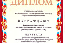 Театральный коллектив нашего детского сад принял участие в районном театральном конкурсе "Театр яктылыкка, нурга илтэ" представив вниманию жюри театральную постановку "Шалкан" и стали лауреатами данного конкурса. Поздравляем наших воспитанников подготовительной группы и руководителя театрального коллектива Кадырову Г.М. с Победой"