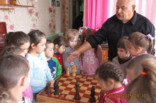 В рамках недели "Я талантлив" в нашем детском саду прошла встреча с мастером-краснодеревщиком Ямаловым Тагиром Мунировичем, который рассказал детям историю создания игры - шахматы. Он рассказал дошкольникам, как проходит процесс подготовки древесины для изготовления шахмат ручной работы. Ребята попробовали расписать акриловыми красками главную фигуру- короля. В завершении мероприятия был поведен мастер-класс по быстрым шахматам.