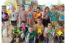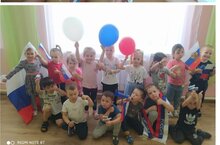12 июньдә билгеләп үтелә торган Россия көне алдыннан, мәктәпкәчә яшьтәге балаларны флагның символик мәгънәсе белән таныштыру, балаларның дәүләт символикасы өлкәсендәге күзаллауларын киңәйтү максатыннан, уртанчылар төркеме балалары белән тәрбияче ГИсмәгыйлова Г.Р. "Россиянең төрле төстәге флагы" дип исемләнгән аппликациясе буенча практик шөгыль үткәрде.