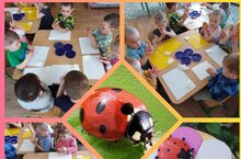 Сегодня 2 группа раннего возраста "Дружная семейка "(воспитатель Галиуллина Ф.Ф) лепили "Божьи коровки". Закрепили имеющися знания о божией коровки, характерные особенности (у него выпуклое округлое тело, ярко-красное спинка украшенная чёрными точками), воспитывали бережное отношения к окружающей природе, расширили словарный запас, желание передавать увиденное в своей работе.