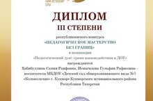 Поздравляем воспитателей нашего детского сада Хабибуллину Санию Раифовну и Исмагилову Гульфию Рафисовну с 3 местом в республиканском конкурсе "Педагогическое мастерство без границ". Желаем дальнейших творческих успехов!