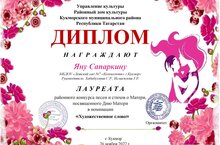 Әниләр көненә багышланган Әни турында җыр һәм шигырьләр бәйгесе лауреатлары - Сапаркина Яна, Запаров Даниэль һәм Закирова Камиланы (җит.Исмәгыйлева Г. Р., Багитова А. А., Хабибуллина С. Р.) котлыйбыз!