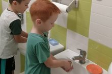 15 октября - Всемирный день мытья рук. Воспитанники старшей группы знают, как важно содержать руки в чистоте. В честь этого дня, ребята вместе с воспитателем Егоровой О.А. эстетично и красочно оформили туалетную комнату группы.