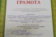 Стали известны результаты IV - Республиканской научно-практической конференции "Туган җир сулышы", организованной МБОУ "Яныльская средняя школа". Хамидуллина Наргиза из подготовительной группы (рук.Степанова Р.С.) была удостоена призового 3 места в секции "Конкурс чтецов". А Хисматуллина Залина из старшей группы (рук.Газизуллина И.И.) стала победителем в номинации "Люби и знай родной свой край". Поздравляем девочек с победой и желаем дальнейших успехов!