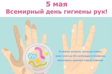 Всемирный день гигиены рук проводится ежегодно 5 мая с целью привлечения внимания к важности повышения качества гигиены рук в учреждениях, оказывающих медицинскую помощь. Дата 05.05 символизирует по 5 пальцев на каждой из рук человека. В этот день Всемирная организация здравоохранения призывает пациентов и членов их семей присоединиться к медицинским работникам в их усилиях по соблюдению правил гигиены рук.