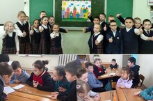 Следующий день был не менее интересным, чем предыдущей. Это был день, где приходилось все считать и решать. Учительница Гайфеева А. Т. провела веселый счет по математике с использованием презентации. Данные задания помогают учащимся развить свои умственные и интеллектуальные способности в области математики. Выполнять такую работу необходимо для развития памяти и математических способностей. В конце учащиеся сделали коллективное панно из геометрических фигур. Такие же мероприятия прошли и в Ят. Дусаевской начальной школе.