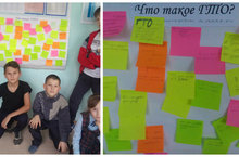 Ребята на цветных стикерах написали свое мнение о ГТО, о его роли в жизни школьников и взрослого населения, написали свои предложения и пожелания в организации работы по сдаче норм ГТО как среди самих обучающихся так и среди учителей и родителей. Написав свое мнение каждый ученик приклеил свой стикер на большой ватман с надписью «Что такое ГТО?», где можно было прочитать мнение каждого ученика.