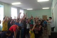 Ты начни его с зарядки" ! Вот под таким девизом проходит наша каждодневная утренняя зарядка для учителей и учеников. -