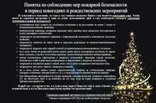 Памятка по соблюдению мер пожарной безопасности в период новогодних и рождественских мероприятий