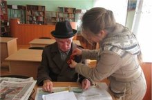 Встреча волонтеров гимназии с ветераном войны Давыдовым Алексеем Афанасьевичем в районной библиотеке. Учащиеся гимназии подарили Георгиевскую ленточку ветерану войны Давыдову Алексею Афанасьевичу, поздравили с наступающим праздником и выразили огромные слова благодарности.