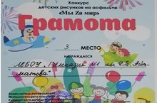 1 Мая на Комсомольской площади прошел конкурс рисунков на асфальте "Мы Za мир" в рамках праздника, посвященного 1 Мая-праздника Весны и труда.Наши участники из 4 класса проявили свою фантазию и изобразили на асфальте удивительный рисунок, защитили его, рассказали стихотворение. В результате команда гимназии заняла 3 место. Поздравляем наших участников и желаем им дальнейших творческих побед!