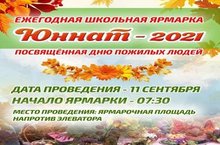 11 сентября на ярмарочной площади пройдет ежегодная осенняя ярмарка ,посвященная дню пожилых людей "Юннат-2021".Приглашаем всех на ярмарку!!!
