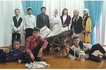 Учащиеся 6-7 классов, посещающие кружок "Сцена", в рамках районного конкурса "Юные герои Великой Победы" поставили спектакль "Уфалла арбасы".