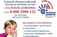 Для этого и существует Детский телефон доверия – бесплатная анонимная служба экстренной психологической помощи детям и их родителям. В 2010 году Фондом поддержки детей, находящихся в трудной жизненной ситуации, в рамках Общенациональной информационной кампании по противодействию жестокому обращению с детьми был создан единый общероссийский номер детского телефона доверия 8-800-2000-122.