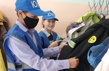 Куркынычсызлык атналыгы. ЮИД отряды әгъзалары укучыларның өске киемендә яктылыкны кире кайтаручы элементлар булуны даими тикшереп торалар.