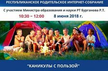 Приглашаем всех родителей присоединиться к Республиканскому родительскому интернет-собранию «Каникулы с пользой». В процессе трансляции слушатели смогут получить ответы на заранее присланные вопросы и квалифицированные советы специалистов. Регистрация для просмотра интернет-собрания не требуется. Вопросы принимаются: с помощью формы задать вопрос по адресу электронной почты roditelirt@mail.ru