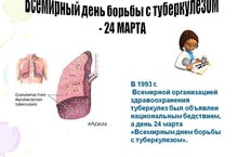 В рамках Всемирного дня борьбы с туберкулезом во всех классах прошли классные часы на тему «Защити себя от туберкулеза». Классные руководители познакомили обучающихся с понятием «туберкулез» и путями его заражения, объяснили учащимся необходимость профилактических прививок от туберкулеза.