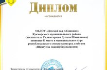 Безнең балалар бакчасы тәрбиячесе Сәлимгәрәева Гөлүзә Шамил кызы "Куркынычсызлык белеме Шкатулка" республика смотр-конкурсының муниципаль турында 2 нче урынны алды.