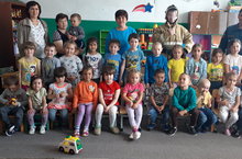3 сентября ребята встретились с настоящими пожарными, которые приехали в детский сад. Инспектор по пропаганде пожарной безопасности рассказал как себя вести при пожаре самим и как помочь другим людям. Практика показывает, что общение с детьми напрямую является более результативным, так как дошкольники лучше усваивают информацию, основанную на личном опыте. Дети задавали много вопросов об истории пожарной охраны, о профессиональной деятельности. Ребятам показали предметы боевой одежды, пожарно-спасательный инвентарь. Даже девчонкам и мальчишкам было интересно примерить пожарные каски. 3 сентябрьдә балалар чын янгын сүндерүчеләр белән очраштылар, алар балалар бакчасына килделәр. Янгын куркынычсызлыгын пропагандалау буенча Инспектор янгын вакытында үз-үзеңне ничек тотарга һәм башка кешеләргә ничек ярдәм итәргә кирәклеген сөйләде. Практика күрсәткәнчә, балалар белән аралашу турыдан-туры нәтиҗәлерәк булып тора, чөнки мәктәпкәчә яшьтәге балалар шәхси тәҗрибәгә нигезләнгән мәгълүматны яхшырак үзләштерә. Балалар янгын саклау тарихы, һөнәри эшчәнлек турында күп сораулар бирделәр. Балаларга хәрби кием предметларын, янгын сүндерү һәм коткару инвентарьларын күрсәттеләр. Хәтта кызлар һәм малайларга да янгын каскаларын киеп карау кызыклы булды.