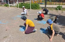 В школе прошла выставка рисунков ко Дню защиты детей. Дети рисовали на асфальте и бумаге.