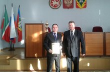 В минувшую субботу Глава Кукморского района Димитриев С.Д. наградил сборную команду директоров района, которая заняла 2 место в Рыбно - Слободинском районе.