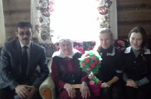 Бүген укучылар авылдашыбыз, тыл ветераны Шарипова Махинас апаны 90 яшьлек юбилее белән котладылар. Аңа укучылар һәм укытучылар коллективы исеменнән матур теләкләр теләделәр,үз куллары белән ясаган чәчәк бәйләмен, матур җыр һәм шигырьләрен бүләк иттеләр.