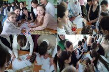 Нашу школу представляли команда родителей и учащихся 10а класса под руководством классного руководителя Шакировой Э.Р. Команда нашей школы достойна выступила. / Жюри хөкеменә өч мәктәп командалары тәкъдим ителде. Алар 4 конкурс биреме үтәде: визит карточкасы " Безнең күңелле дус сыйныф!" "Бердәм сыйныф серләре" күргәзмәсе, "Хәтер һәм батырлык" иҗат номеры, "Бердәм тәрбия мохите: ата-аналар, балалар, сыйныф җитәкчесе һәм тәрбия буенча киңәшче" иҗат проектын яклау. Безнең мәктәптән ата-аналар һәм 10А сыйныф укучылары командасы чыгыш ясады.Сыйныф җитәкчесе Э. Р. Шакирова җитәкчелегендә безнең мәктәп командасы лаеклы чыгыш күрсәтте. -