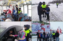В рамках проведения ОПМ "Зимние каникулы" в Кукморском районе РТ, сотрудниками ГБУ "БДД", ГИБДД, ПДН, совместно с отрядом ЮИД МБОУ "СОШ с.Манзарас" была проведена акция "Полицийский Дед Мороз", направленная на повышение культуры поведения участников дорожного движения. Дети из отряда ЮИД напоминали водителям транспортных средств о необходимости соблюдения строгих правил безопасного поведения на дорогах, просили водителей быть предельно внимательными по отношению к пешеходам и пассажирам. Поздравляли с наступающими праздникми, вручали световозвращающие элементы, жилеты и памятки. Новогоднюю атмосферу праздника создали Дед Мороз и Снегурочка.