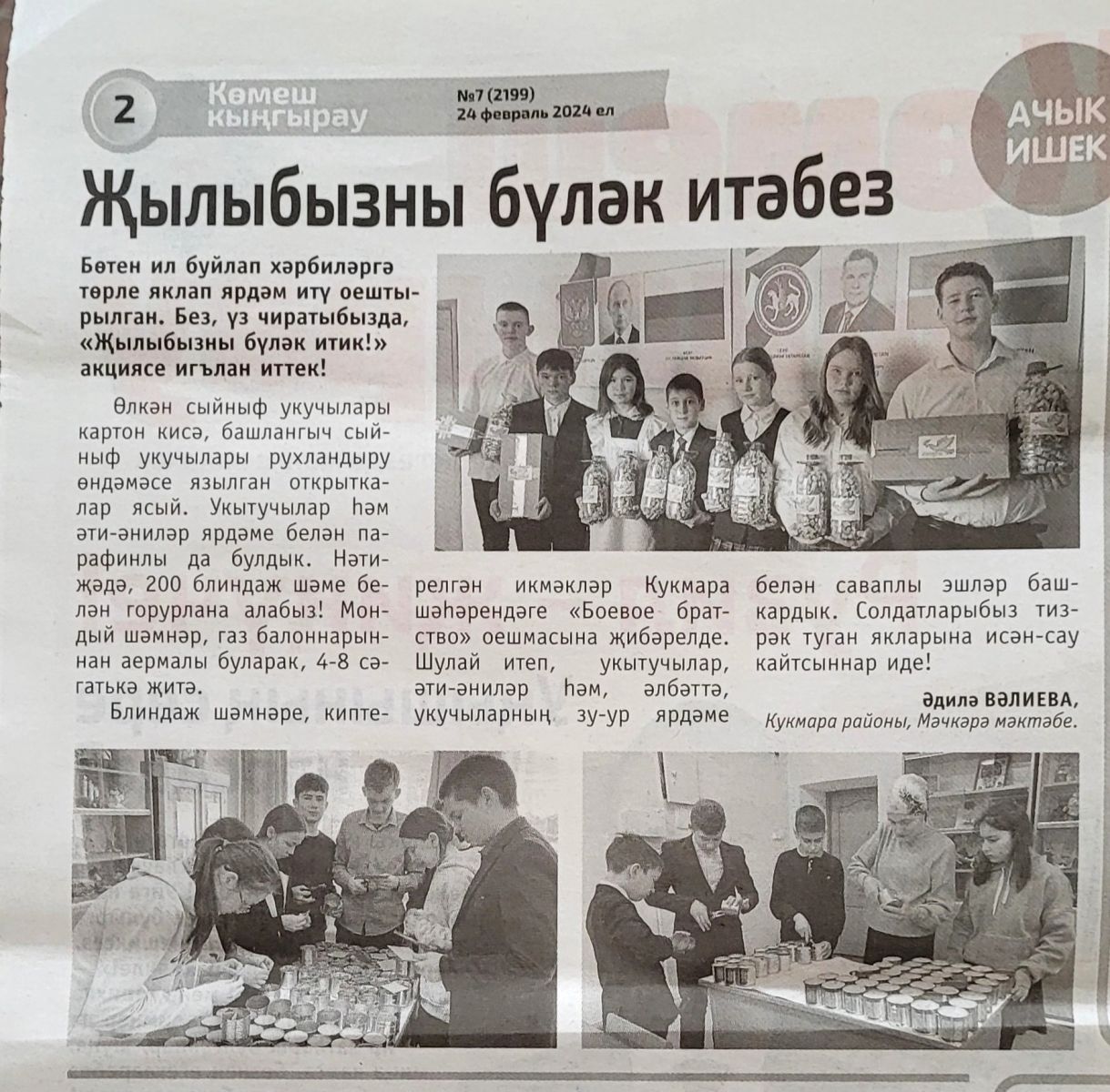 Беренчеләр хәрәкәтенең волонтерлык буенча лидеры, "Көмеш кыңгырау" газетасының яшь журналисты Вәлиева Әдиләнең язмасы белән сез дә танышыгыз әле.