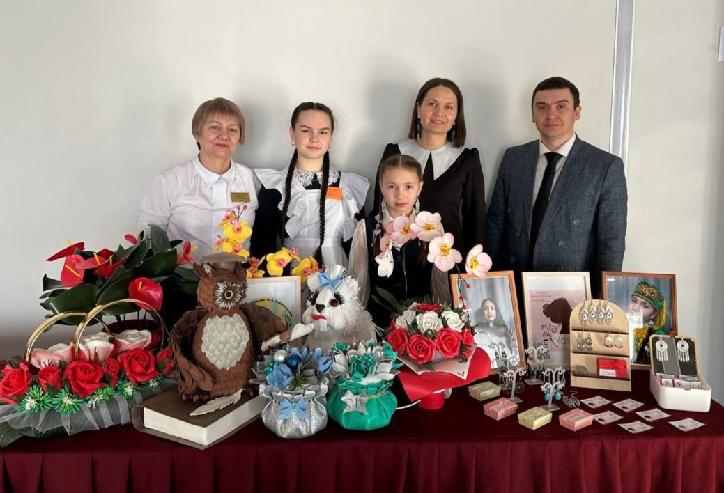 Ученица 4 класса Хамидуллина Язгуль, занявшая 1 место в номинации "Мой первый бизнес "Ярмарка-выставка" муниципального конкурса школьных бизнес-проектов "Шаги в бизнес", посвященного Году семьи в России и научно-технологическому развитию в Татарстане (рук.Хамидуллина Г.М.) и ученица 8 класса Гайнуллина Залина (рук. Миргазизова Р. Н.), принимавшая активное участие в номинации "Бизнес проекты".