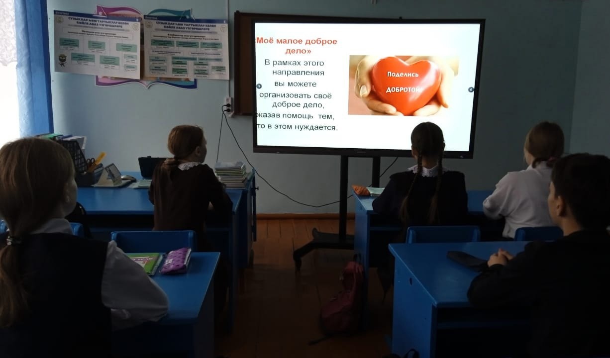 "Көзге яхшылык атнасы" кысаларында 8нче сыйныфларда "Яхшылыгын белән бүлеш" дигән әңгәмә уздырылды. Укучылар "Яхшылыгын һәрчак яхшылык булып үзеңә кайтачак" дигән сүзнең мәгънәсен ачык аңладылар.
