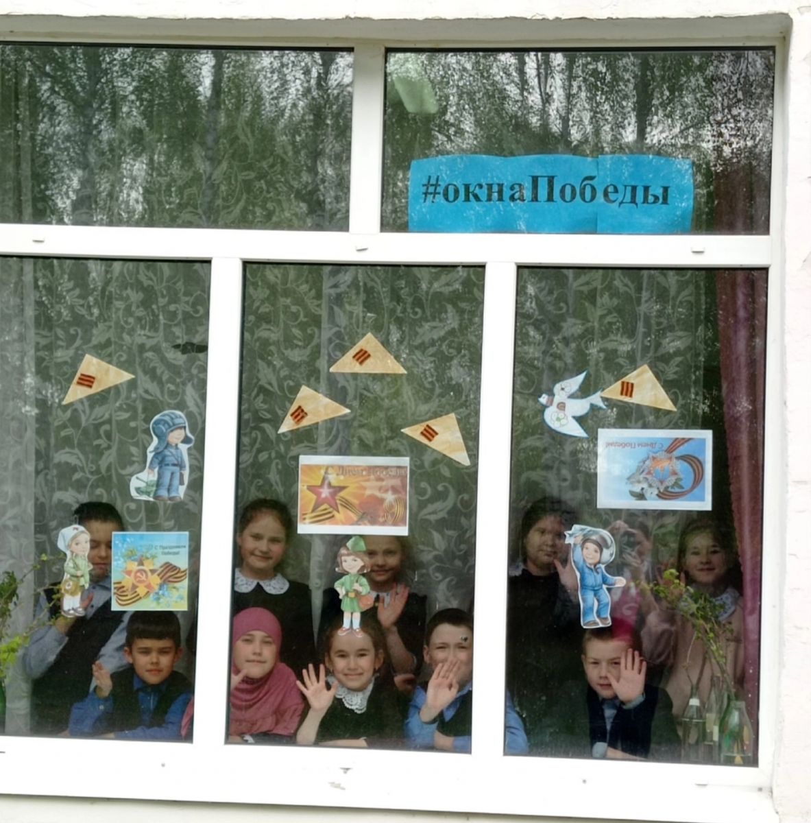 2нче сыйныф укучылары быелгы #ОкнаПобеды акциясенә сыйныф бүлмәсенең тәрәзәләрен бизәде.