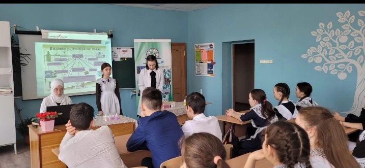 "Туклану атналыгы" кысаларында үткәрелгән "Дөрес туклану"га багышланган сыйныф сәгатьләре үткәрелде. 2 сыйныфта - Хамидуллина Г.М. "Дөрес туклану серләре"; 3 сыйныфта - Аглиуллина М.Ш. "Витаминнар"; 4 сыйныфта - Шарипова Д.И. "Мәктәптә ашау файдасы"; 10 сыйныфта - Валиева С.М. "Азыкларның химик составы".