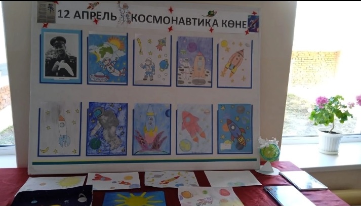 Космонавтика көне уңаеннан үткәрелгән рәсем һәм эшләнмәләр конкурсы күренешләре.