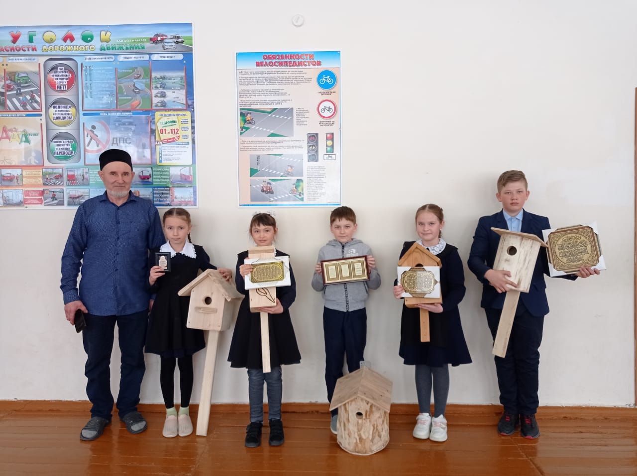 Совместно с имамом Кошкинской мечети Рамилем хазратом в нашей школе прошла акция "Скворечник - 2023". Всего в рамках акции было сделано 28 скворечников. Наиболее активными классами были признаны 1-й и 6-й классы. Также Рамиль хазрат, отметив 1,2,3 места по своему выбору, вручил ученикам роскошные подарки, каждому участнику вручил гостинцы.