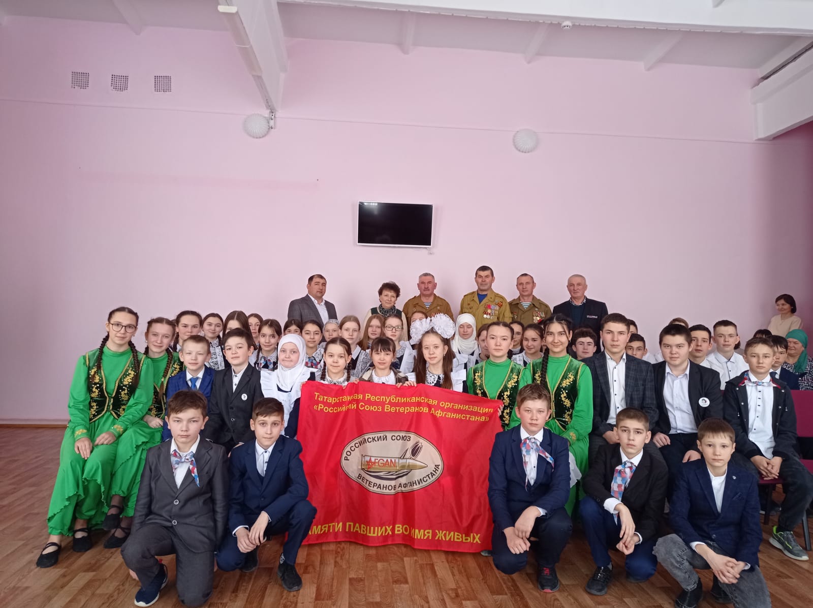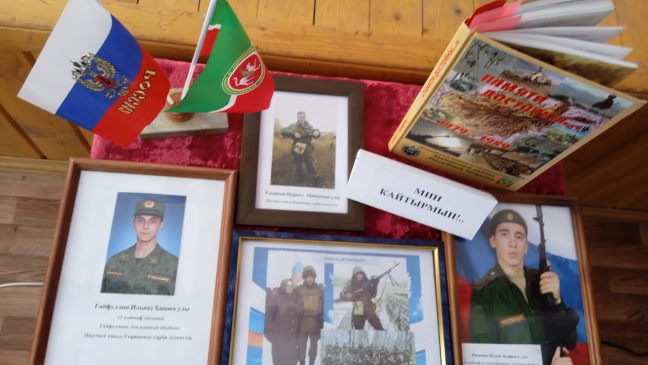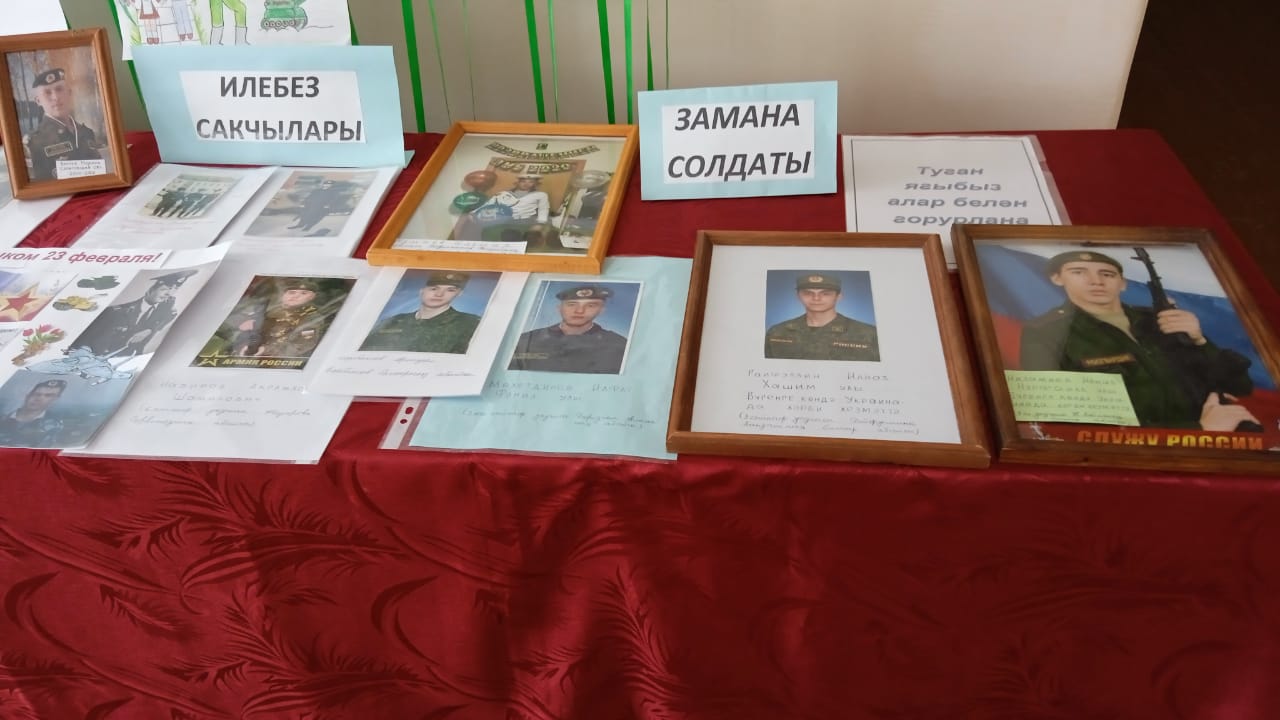Мәктәбебездә хәрби-патриотик айлык кысаларында төрле чаралар, конкурслар, спорт ярышлары дәвам итә. Укучылар "Солдатка хат" акциясендә актив катнашалар. "Сугыш минем гаиләм тарихында", "Илебез сакчылары", " Замана солдаты" дигән исем астында фотокүргәзмә оештырылды. Шулай ук "Хәтер", " Көрәш кыры" дип исемләнгән иҗади бәйге игълан ителде. Патриотик җыр һәм бию бәйгеләренә әзерлек бара.